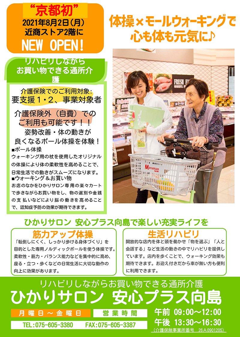 京都初!! 近商ストア2階にリハビリしながらお買い物できる通所介護OPEN!