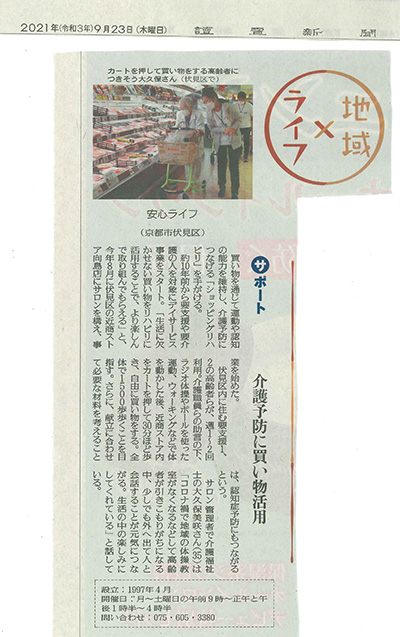 2021年8月:京都新聞に「ひかりサロン 安心プラス向島」が紹介されました。