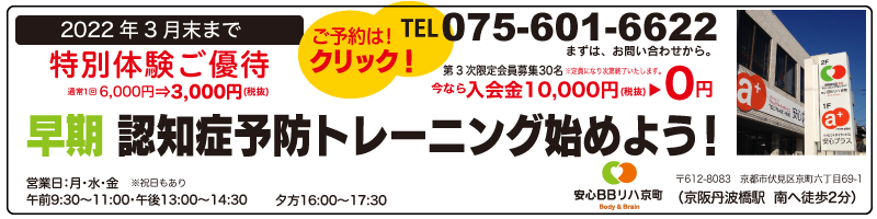 早期認知症予防に朗報! 京都初!! 会員制トレーニングセンターが伏見区京町に誕生。