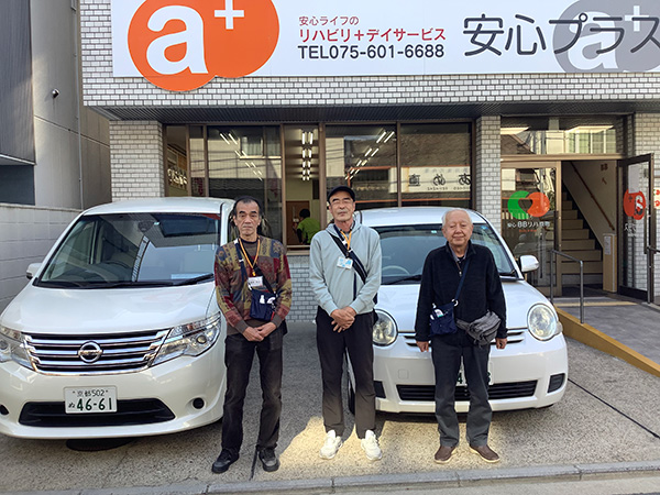 向かって左から「椿原幸治」つばきはらこうじ・「岸田敏信」きしだとしのぶ・「松﨑 勝」まつざきまさる